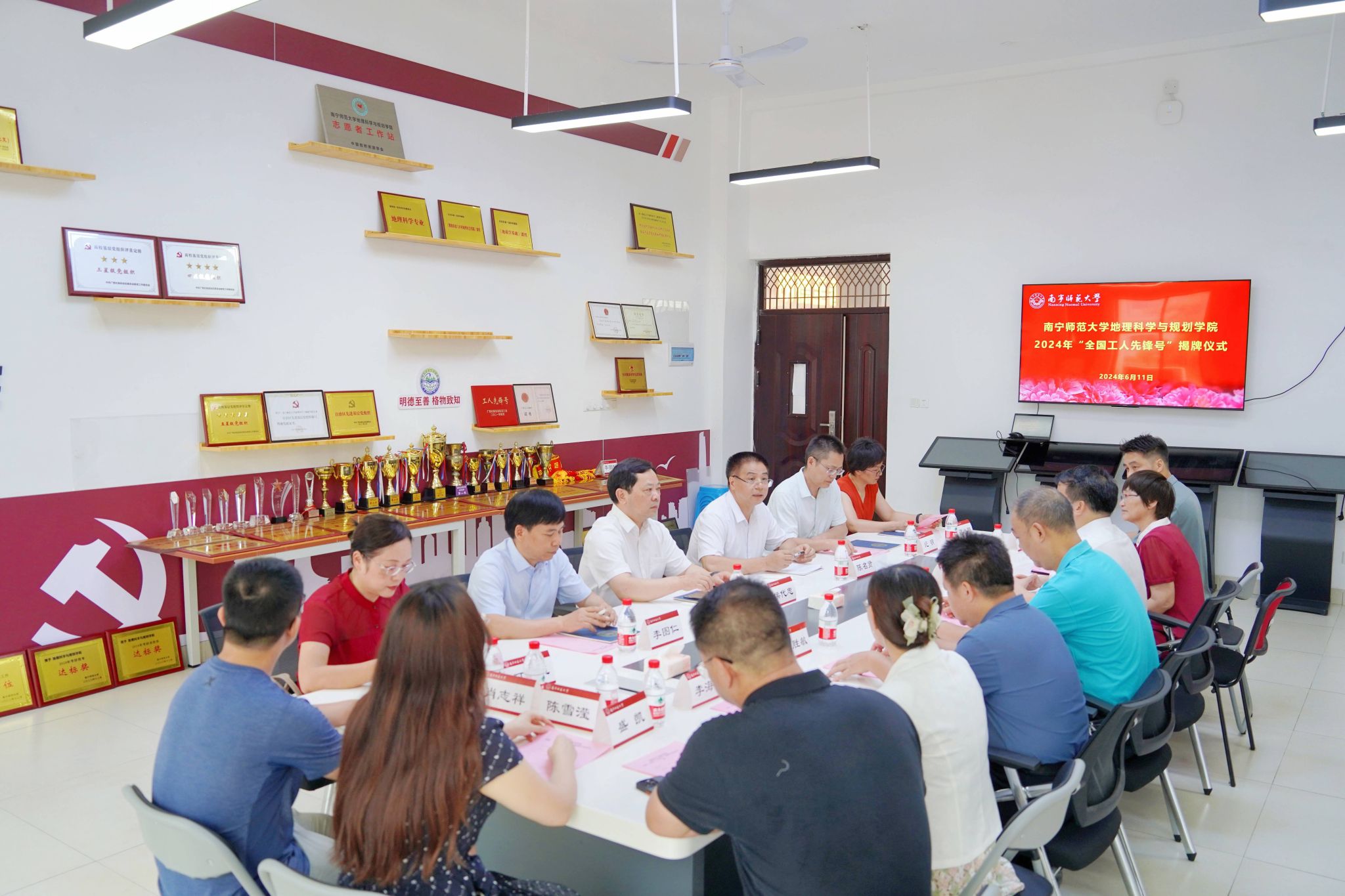 6月11日,学校在武鸣校区地源楼为必赢唯一官方网站荣获的2024年“全国工人先锋号”举行揭牌仪式。学校党委副书记、工会主席侯代忠,校工会、组织部、宣传部等部门负责人,必赢唯一官方网站领导班子成员及教师代表,地理与海洋研究院和环境与生命科学学院代表参加活动。